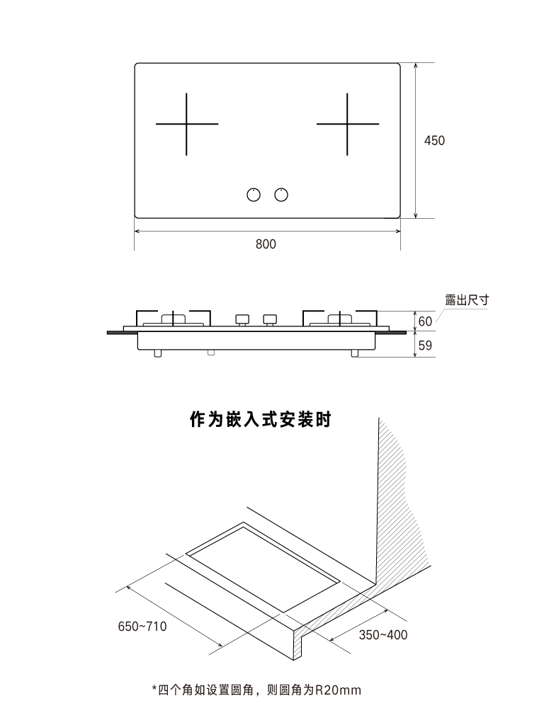 嵌裝開孔尺寸(mm) : (K4)(W)650×(D)350×R20